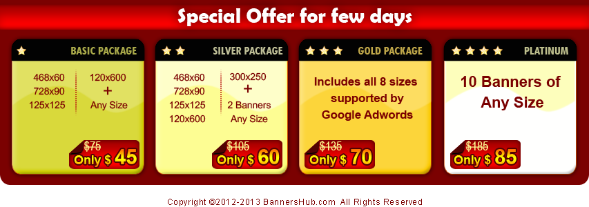 BannersHub is a professional banner design company that focuses on web banner design for both hosting and non-hosting industries. BannersHub design services start from $8.50 with 5 free revisions, 24 to 72 hours- fast turnaround time, and 24x7- excellent customer support.